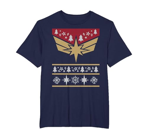 Marvel Captain Marvel Carol Danvers Holiday Sweater T-Shirt, Men, Navy Blue, Small