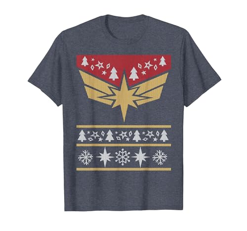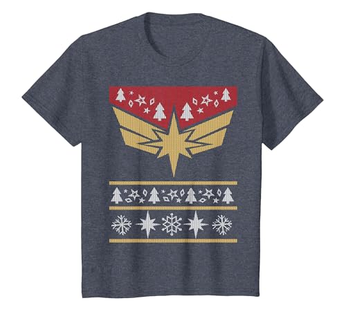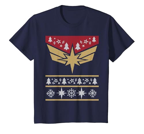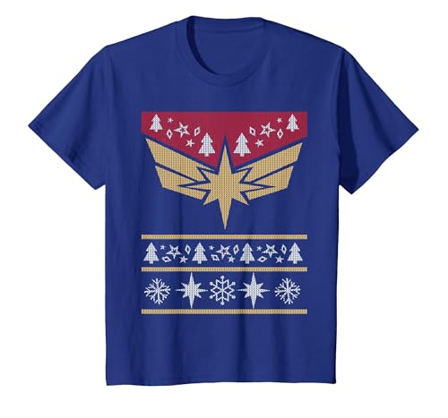 Marvel Captain Marvel Carol Danvers Holiday Sweater T-Shirt, Youth, Navy Blue, Medium