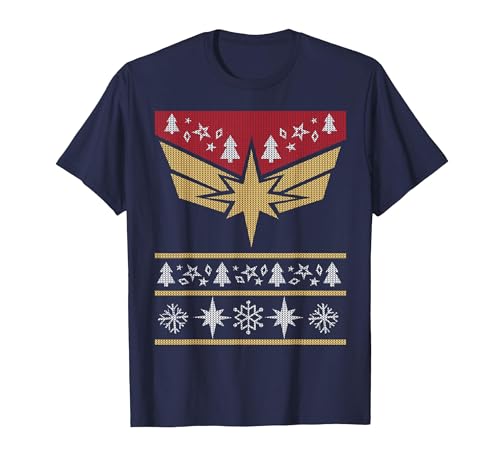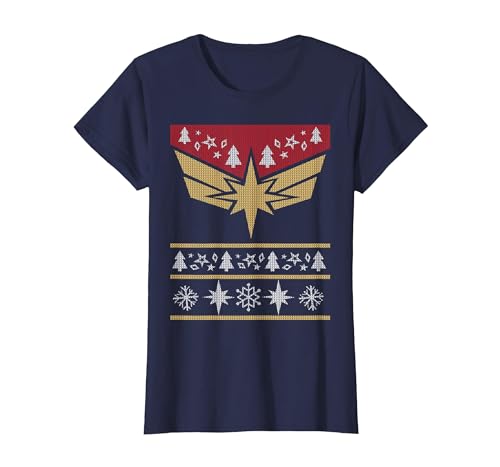 Marvel Captain Marvel Carol Danvers Holiday Sweater T-Shirt, Women, Navy Blue, Large