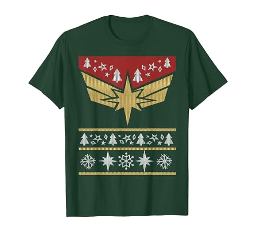 Marvel Captain Marvel Carol Danvers Holiday Sweater T-Shirt, Men, Dark Green, X-Large