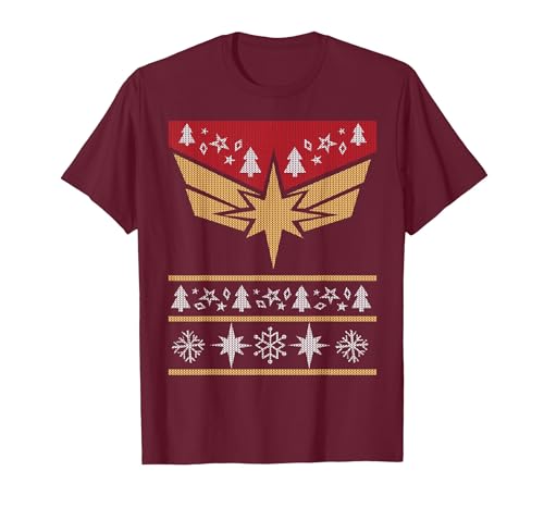 Marvel Captain Marvel Carol Danvers Holiday Sweater T-Shirt, Men, Burgundy, Small