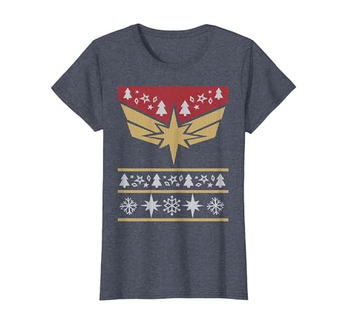 Marvel Captain Marvel Carol Danvers Holiday Sweater T-Shirt, Women, Navy Blue, Medium