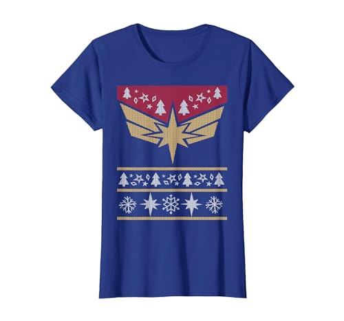 Marvel Captain Marvel Carol Danvers Holiday Sweater T-Shirt, Women, Royal Blue, Medium