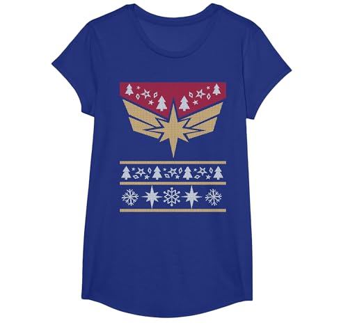 Marvel Captain Marvel Carol Danvers Holiday Sweater T-Shirt, Girls, Royal Blue, Small