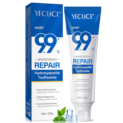 9.9% Hydroxyapatite Toothpaste for Enamel Repair and Tooth Strengthening, Nano Hydroxyapatite Remineralizing Toothpaste, Fluoride Free Gentle Whitening Tooth Paste for Sensitive Teeth, Fresh Mint