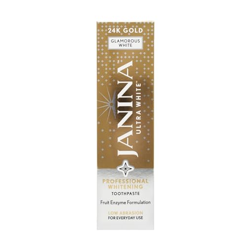 Janina Ultra White 75ml 24K Gold Toothpaste, Mint, Low Abrasive Formula with Anti-Inflammatory Colloidal Gold & Whitening Complex for Teeth Whitening, for Everyday Use, Vegan & Cruelty Free