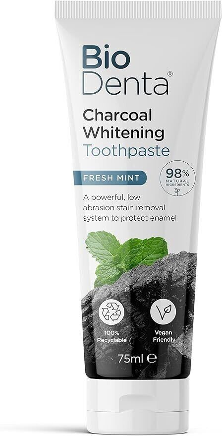 Biodenta Charcoal Whitening Toothpaste fresh Mint 98% Natural Vegan Friendly 75m