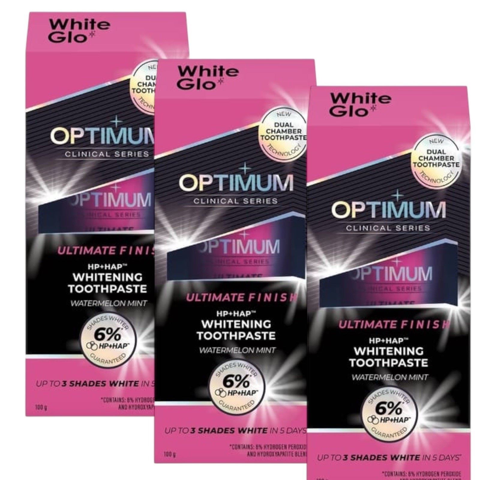 3 x White Glo Optimum Whitening Toothpaste Watermelon Mint 100g