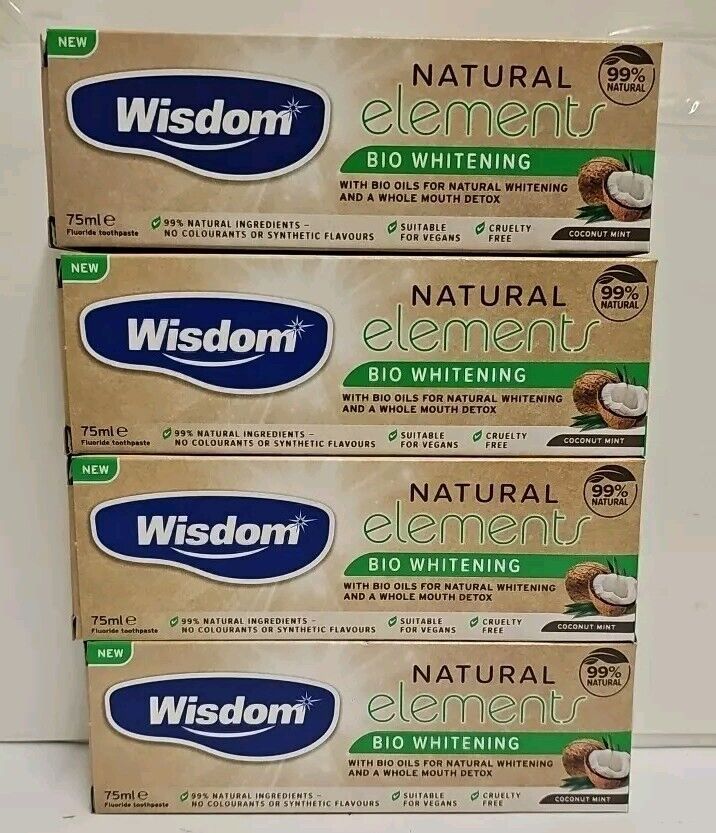 Wisdom Natural Elements - Coconut & Mint Toothpaste - Bio Whitening - 75ml x 4