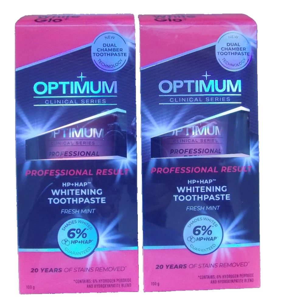 2 Packs White Glo Optimum Whitening Toothpaste Watermelon Mint in 100g Tubes