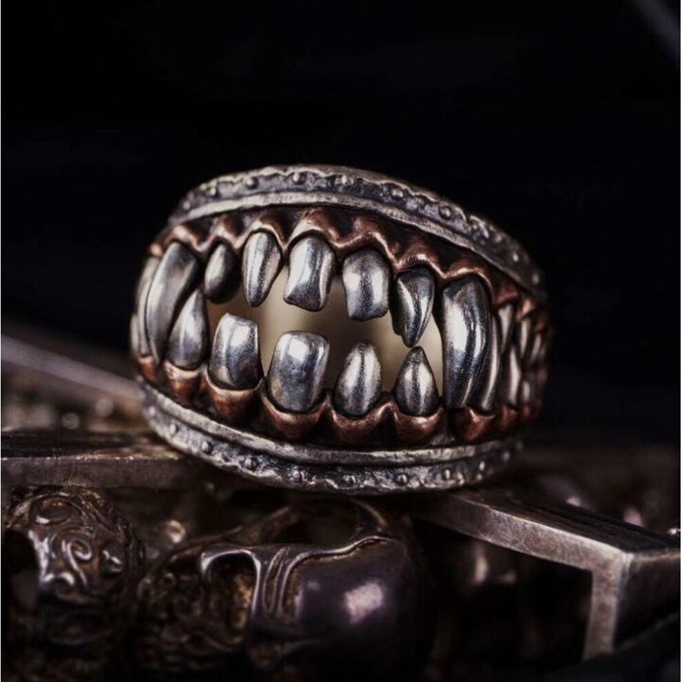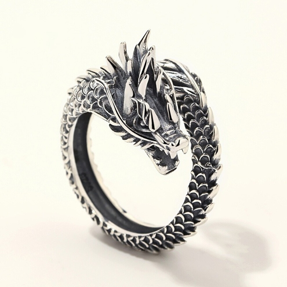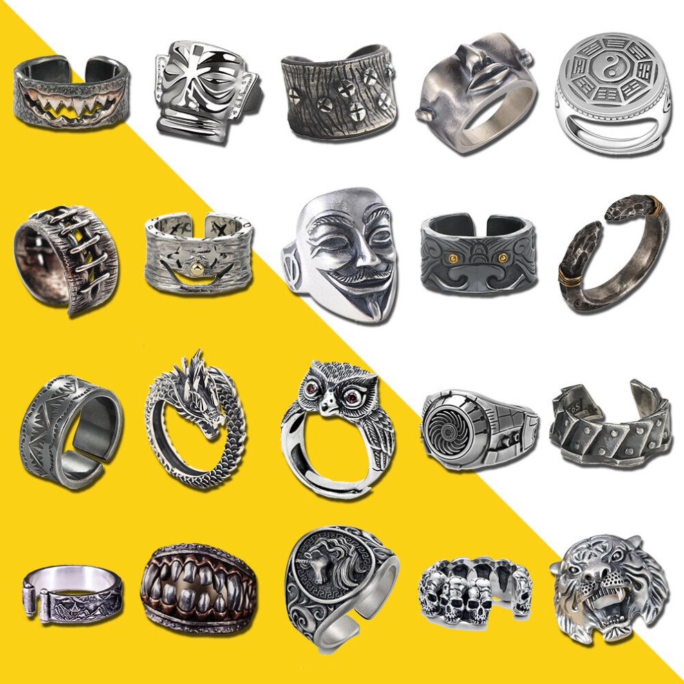 SHARK Punk Gothic Ring for Women Mens Animal Mask Silver Plated Dragon/Tiger Retro Party Anniversary Jewelry Lover Gift