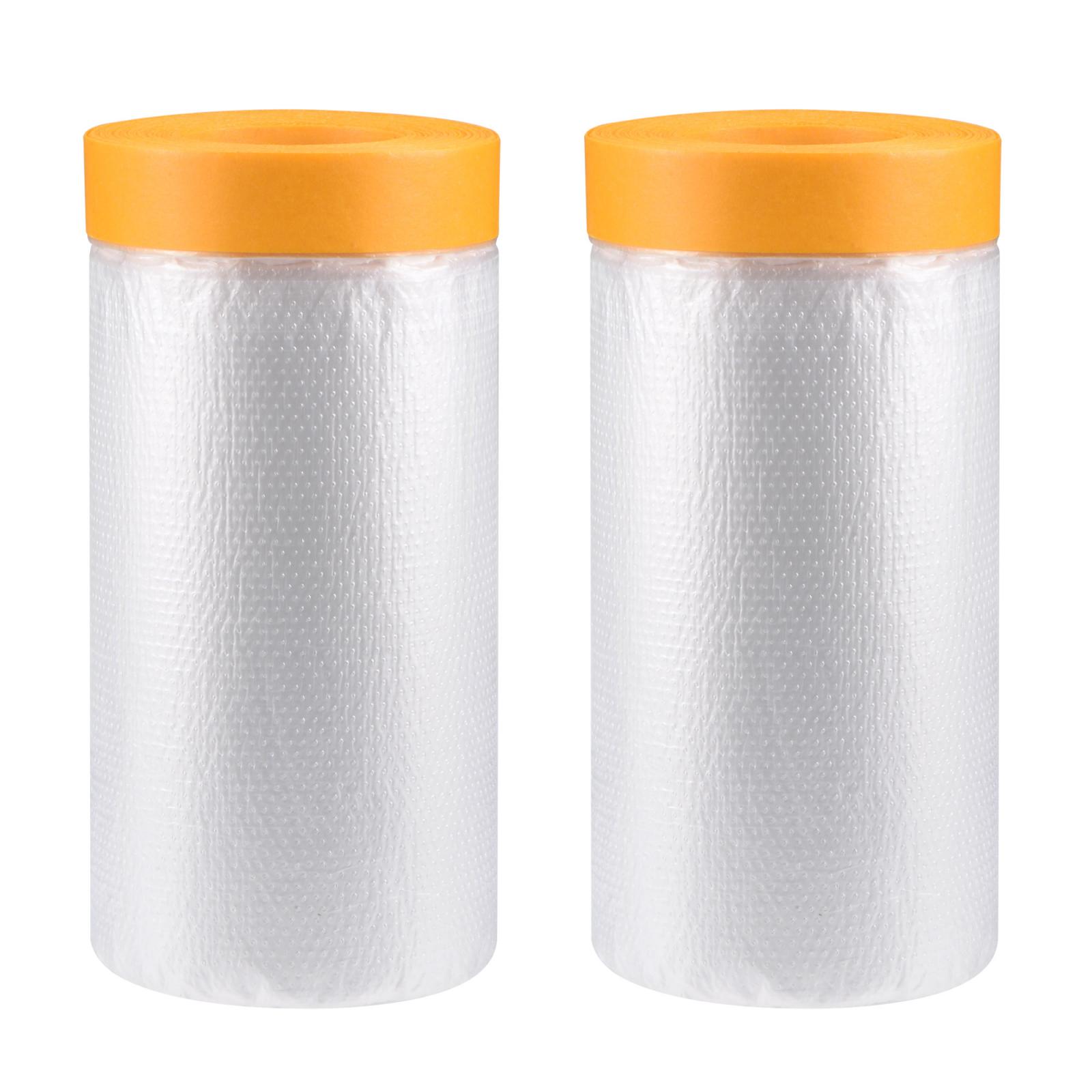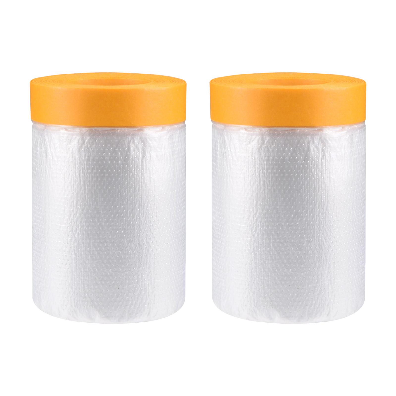 2 Rolls 20m Pre-Taped Masking Film Masking Tape Roll For House Painting Cover