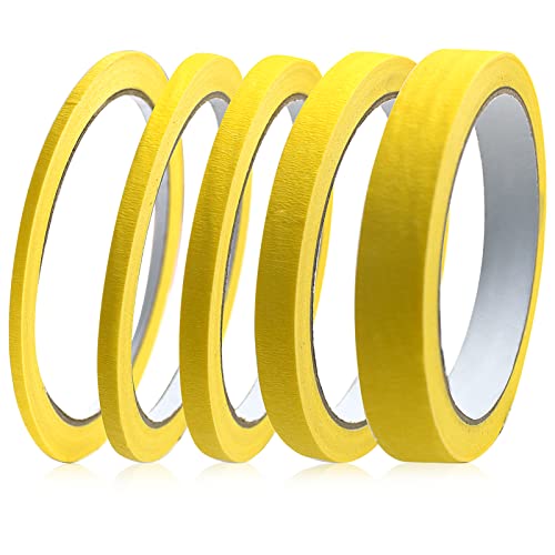 Udewo 5 Rolls Yellow Masking Tape,Fine Line Tapes Painters Tape Artist Masking Tape 3/5/7/10/15mm Widex22 Yard Writable Masking Tape Automotive Masking Tape Premium Masking Tape Painting & Decorating