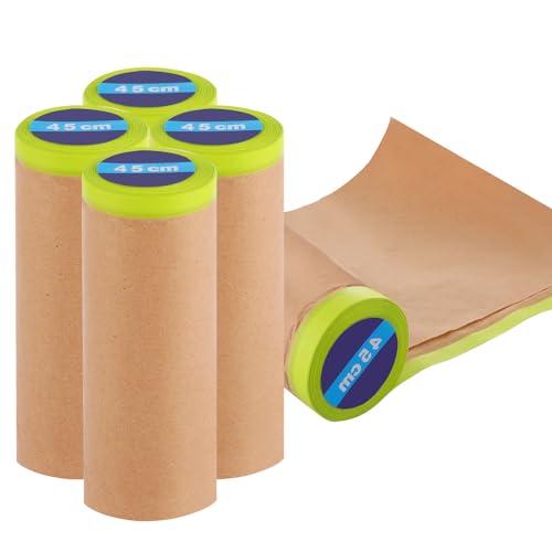 APACALI 5 Rolls Masking Paper, 45cm x 11m Masking Paper for Spraying, Pre Taped Masking Film, Masking Tape for Painting Furniture Decorating Floor