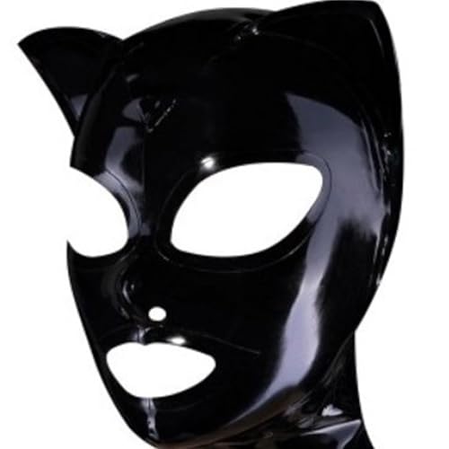 KYTFLCG Latex Hood Masks Cat Exposed Eyes and Mouth Latex Mask Black for Men Women Rubber Masks Cosplay Club Wear(Size:L)