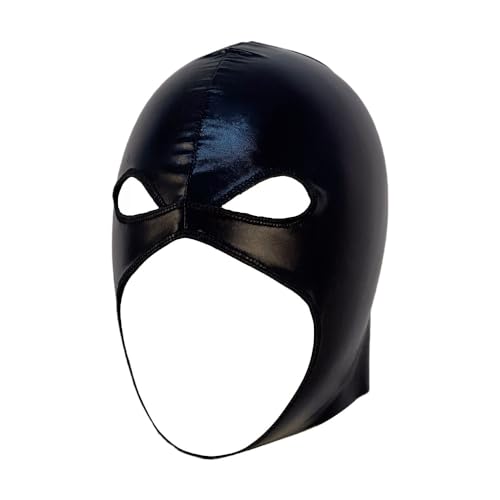Liquid Shiny Metallic Patent Leather Masks Headgear Open Eyes Mouth Unisex Funny Mask for Halloween Party Cosplay Costume Accessories (Black,One Size)
