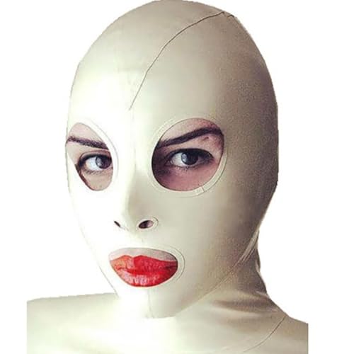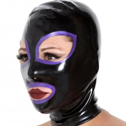 WXLPCGO Latex Hood Masks Back Zipper Exposed Eyes and Mouth Rubber Masks Cosplay Club Party Costumes(Size:M-65CM)