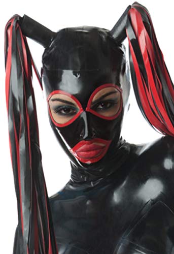 Latex Rubber Big Eyes Hood with Double Streams Masks 0.4MM, Black, Large