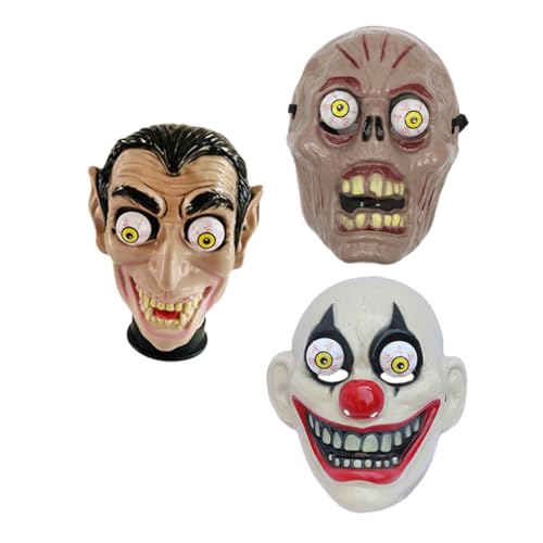 VANZACK 3 Pcs Halloween Scary Masks with Spring Eyes Horror Vampire Clown Zombie Design for Halloween Party Decor Cosplay Costume Plastic Face Masks