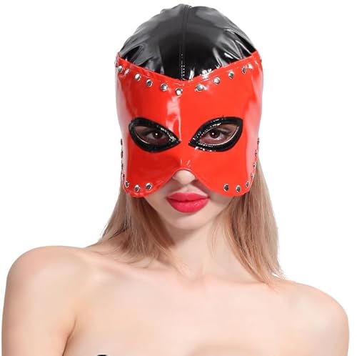 JNGUOSICN PU Leather Mask Full Cover Hood Masks Opened Mouth Show Eyes Face Mask Cosplay Costume Hood Headgear Wet Look Role Play Headwear for Couple Game Party Carnival