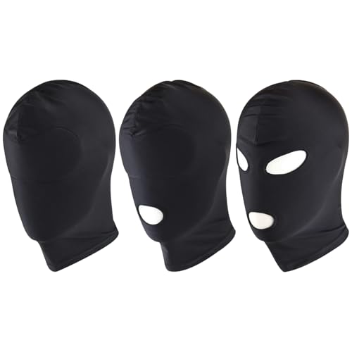 SYEYCW 3 Pcs Black Mask Set, Full Cover Hood Masks, Breathable Elastic Open Eyes and Mouth Mask, Open Mouth Head Masks, Unisex for Halloween Party, Cosplay Costume, Carnival Night, Stage Performances