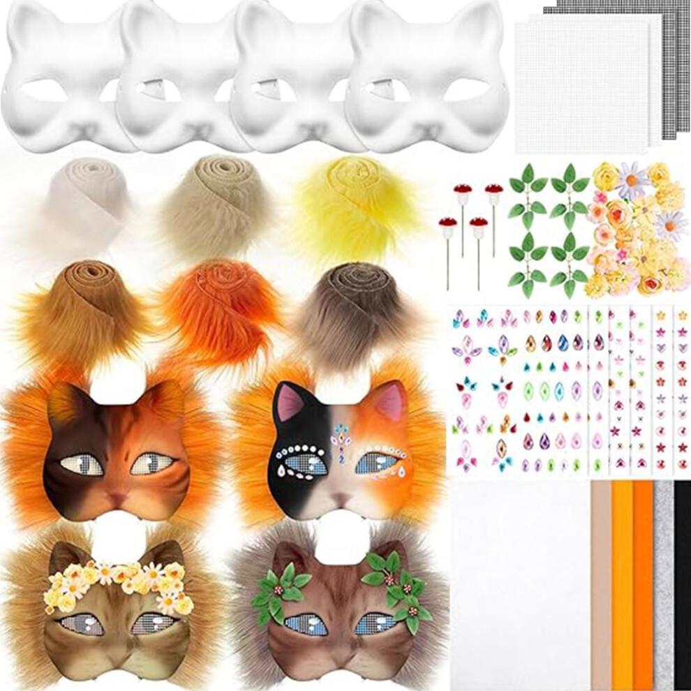 DIY Therian Mask Kit, Cat * Masks Shape with Plastic Eyes Mesh Felt Fabric, Furry Animal Mask Making Craft for Halloween Cosplay Party
