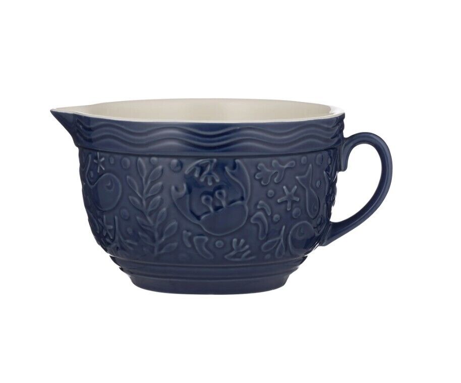 Mason Cash Nautical Batter Bowl | 1.9 Litre Capacity | Blue Stoneware Bowl with Embossed Sea Life Design | Lightweight & Dishwasher Safe | Ideal for Mixing, Whisking & Pouring Batter
