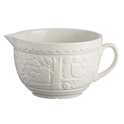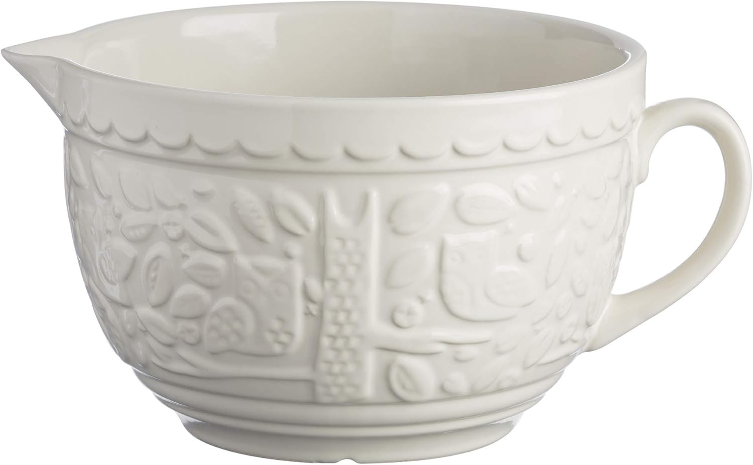 Mason Cash in The Forest Owl Batter Bowl 2 Litre | Cream Stoneware Mixing & Pouring Bowl for Batter Mixes, Embossed Woodland Design