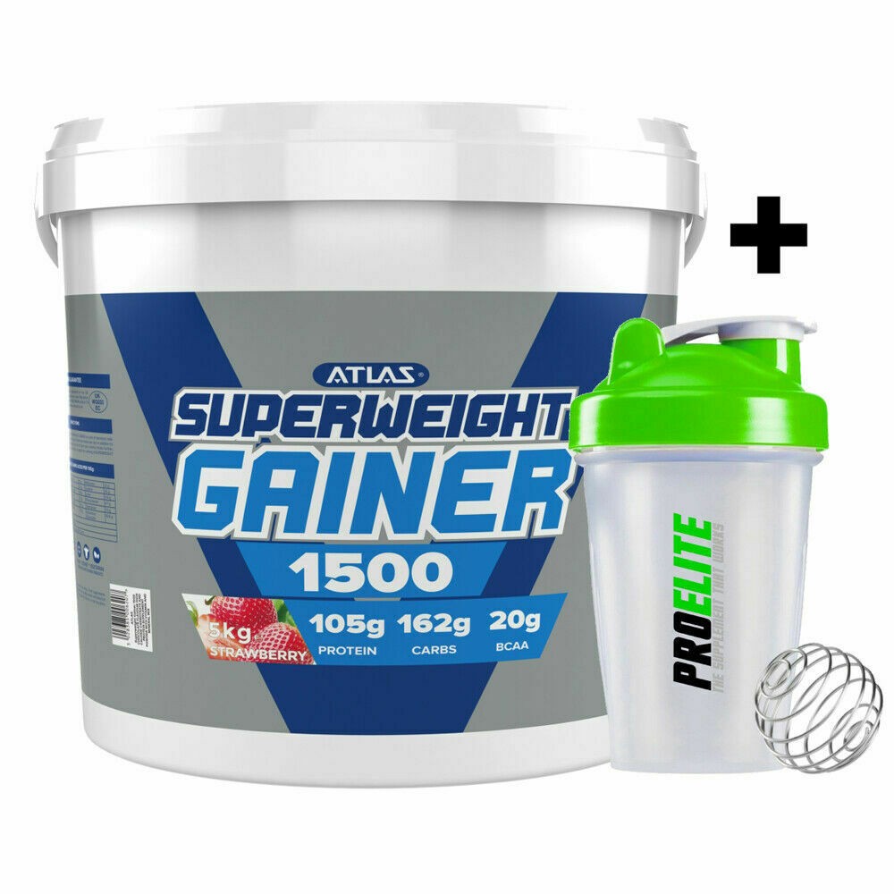 ATLAS SUPER WEIGHT MASS SIZE GAINER GAIN 5KG STRAWBERRY FLAVOUR +ANY FREE SHAKER