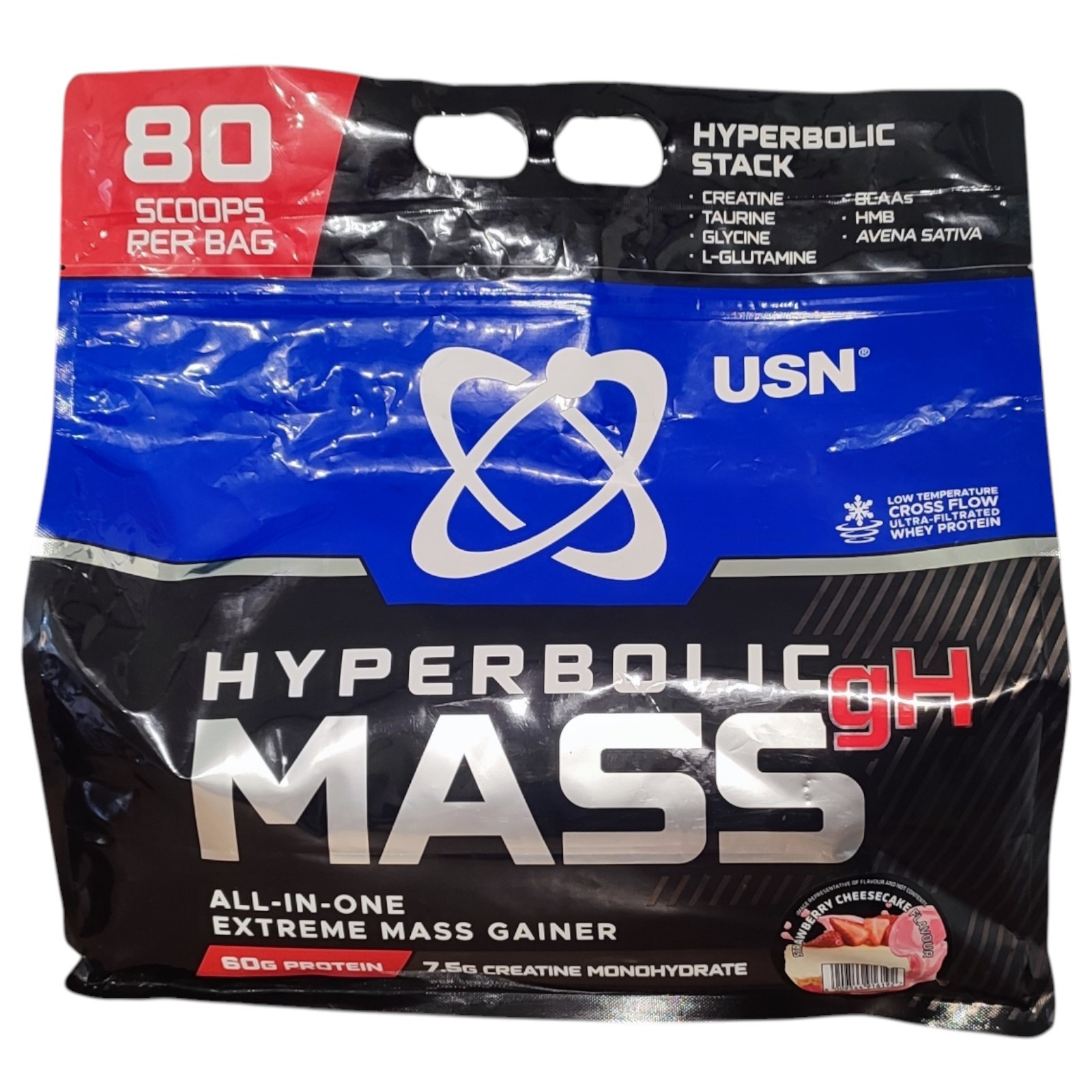 USN Hyperbolic Mass Strawberry 2kg: High Calorie Gainer Protein Powder for Fast Muscle MassâWeight Gainer, With Added Creatine and Vitamins