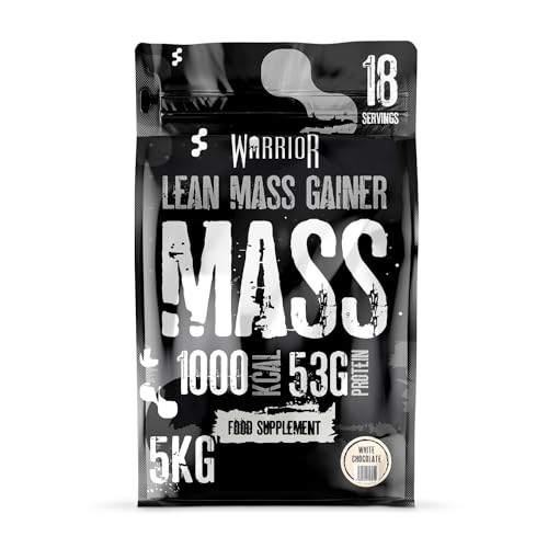 Warrior Mass Protein Powder – 5.04kg – Serious Mass Gainer – High Calorie, Weight Gain Supplement – 61g of Protein, 18 Servings, 1000+ Calories Shake, Supports Muscle Growth (White Chocolate, 5kg)