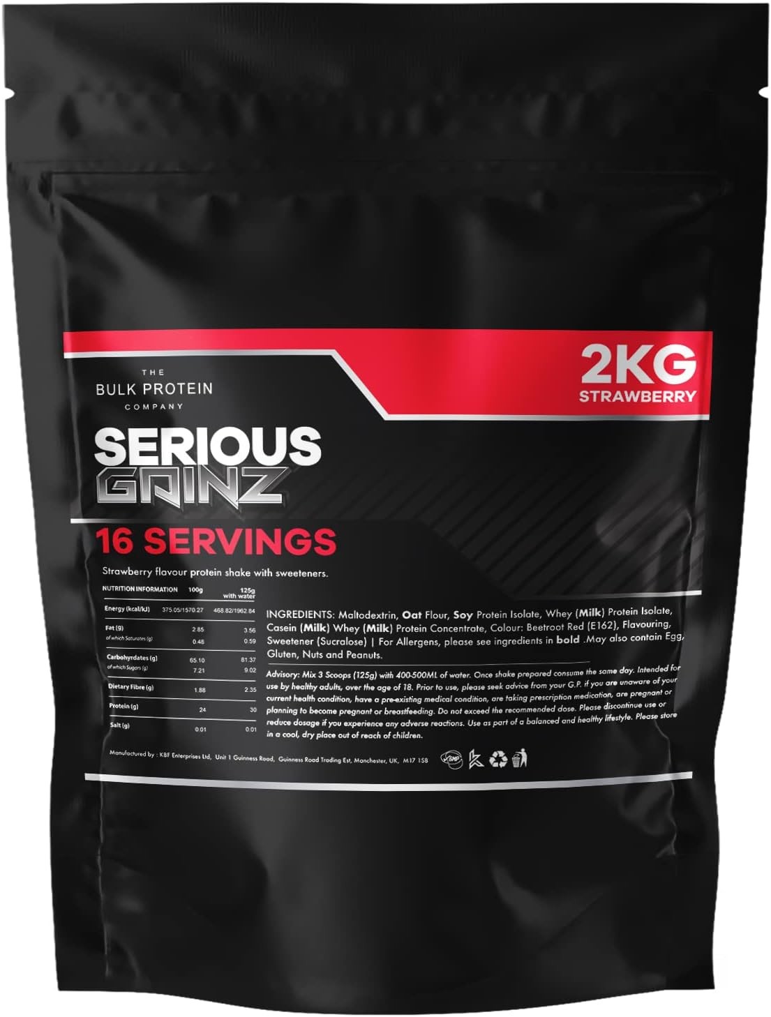 The Bulk Protein Company SERIOUS GAINZ 2kg - Whey Protein Powder - Weight Gain, Mass Gainer - 30g Protein Powders - Bulk Protein Company (Strawberry, 2kg)