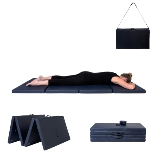 Portable Folding Massage Mat For Thai Shiatsu & Feldenkrais Therapy - Extra Wide & Lightweight Non-Slip With Handle & Carry Case - Thick Foam & Durable PU Upholstery For Yoga & Pilates (Navy)