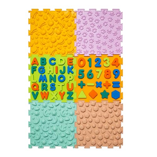 Anjinwiper 6 PCS Sensory Massage Puzzle Play Mat Textured Sensory Mats Silicone Training Tiles with Silicone Alphabet & Number Puzzle