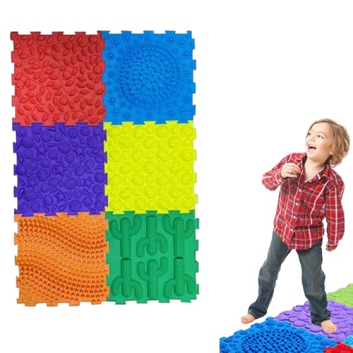 Massage Puzzle Play Mat for Floor- 6pcs Sensory Mats Kids Interlocking Orthopedic Floor Tiles - Bright Colour Textured Floor Puzzle Mat Reflexology Acupressure Children Activity By Playlearn