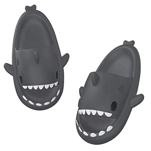 papasgix Shark Sliders Slippers for Women and Men, Summer Quick Dry Bathroom Shower Sandals, Super Soft Chunky Massage Shark Pillow Slippers for Indoor & Outdoor Black 9-9.5