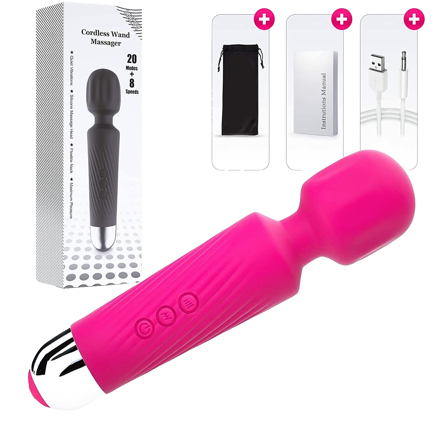 Rechargeable Personal Wand Massager-20 Vibration Patterns & 8 Speed-Travel Bag Included-Perfect for Muscle Tension,