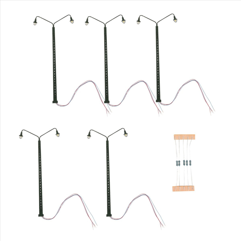 5x Model Railway Lights Lattice Mast Light, Gauge H0 Light Layout LED Lamp 5 Pieces Of Series Resistors For Connection To 12-1