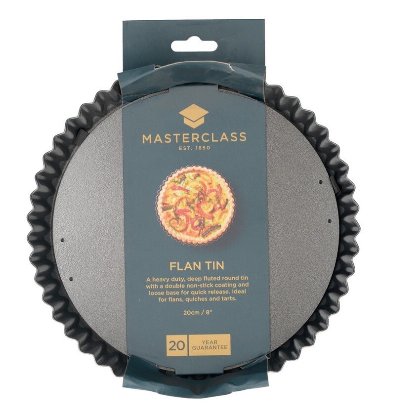 Flan Tin Round Loose Base 8 Inch / 20cm Masterclass Non Stick Oven Baking Quiche
