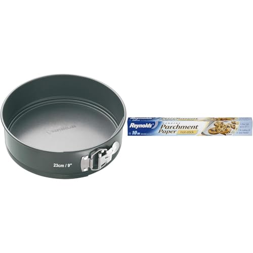 MasterClass Non-Stick Cake Tin for Baking, Spring Form Loose Base, Round 23cm (9"), Sleeved & Reynolds Non-Stick Parchment Paper | 380mm x 10m