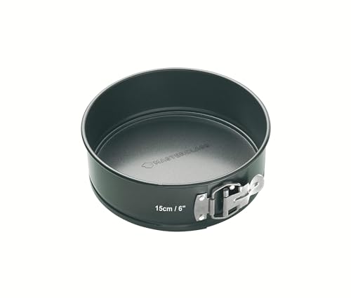 MasterClass 15 cm Springform Cake Tin with Loose Base and with PTFE, PFOA and BPA Free Non Stick, Robust 1mm Thick Carbon Steel, 6 Inch Small Round Pan, Grey