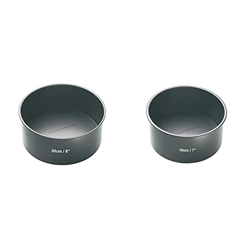 MasterClass 20 cm Deep Cake Tin with PFOA Free Non Stick and Loose Bottom, 1 mm Carbon Steel, 8 Inch Round Pan & Non-Stick Loose Base Deep Cake Pan, Grey, 18 cm (7 inches)
