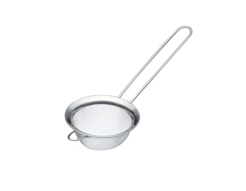 MasterClass Fine Mesh Sieve, Stainless Steel, Polished Rim and Handy Round Bowl with Hooked Handle, 7.5cm (4"), Tagged Silver