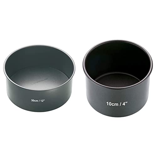 MasterClass KCMCHB57 30 cm Deep Cake Tin with PFOA Non Stick and Loose Bottom, 1 mm Carbon Steel, 12 Inch Large Round Pan, Grey & 10cm / 4'' Non Stick Pork Pie Tin - Deep Cake Baking/Mould Pan