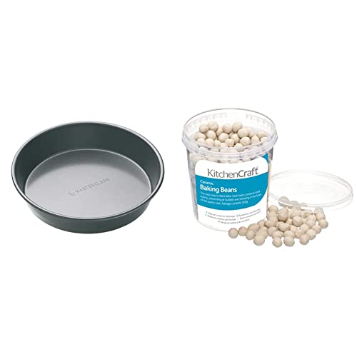 MasterClass 23 cm Deep Pie Dish with PFOA Non Stick, Robust 1 mm Carbon Steel, 9 Inch Round Pan & KitchenCraft Ceramic Baking Beans, 500g