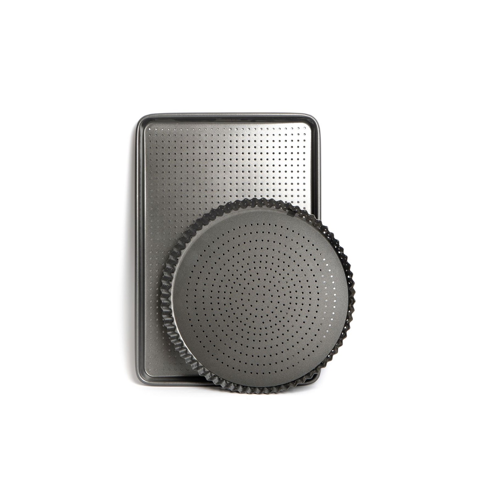 MasterClass Non-Stick Set of Trays Round Fluted Flan and Baking/Cookie Tray