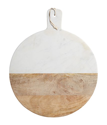 MasterClass Round Marble / Wooden Serving Paddle Board, 40.5 x 50 cm (16" x 19.5"), White/Brown, Wood
