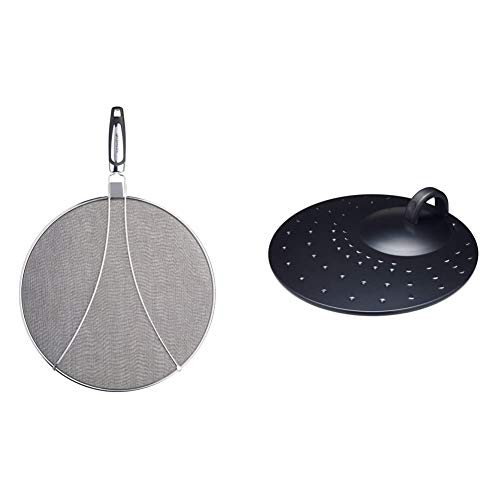MasterClass Splatter Guard, Stainless Steel, Odour-Resistant, 33 cm (13") & KitchenCraft Frying Pan Splatter Guard Lid with Handle, Metal Pan Lid, Dishwasher-Safe 31 cm (12''), Black