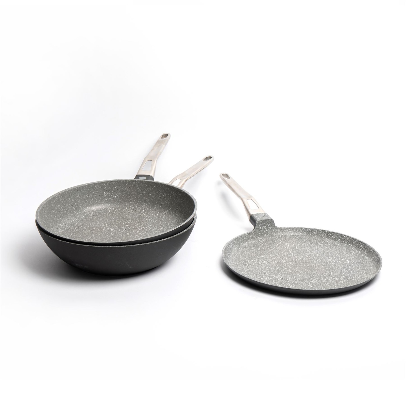 3pc Non-Stick Cookware Set with Cast Aluminium Wok 28cm, Frying Pan 28cm and Crepe Pan 28cm