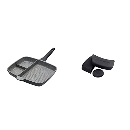 MasterClass KitchenCraft Cast Aluminium Non Stick Induction 3-in-1 Multi Section Grill Pan, All-in-One Frying Pan, 32 cm & MCMCASS3PC Pan Handle Sleeve Set for Cast Aluminium Casserole Pots, 3 Pieces